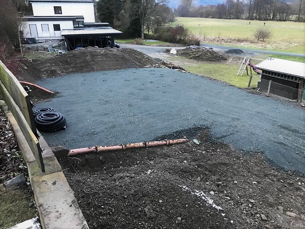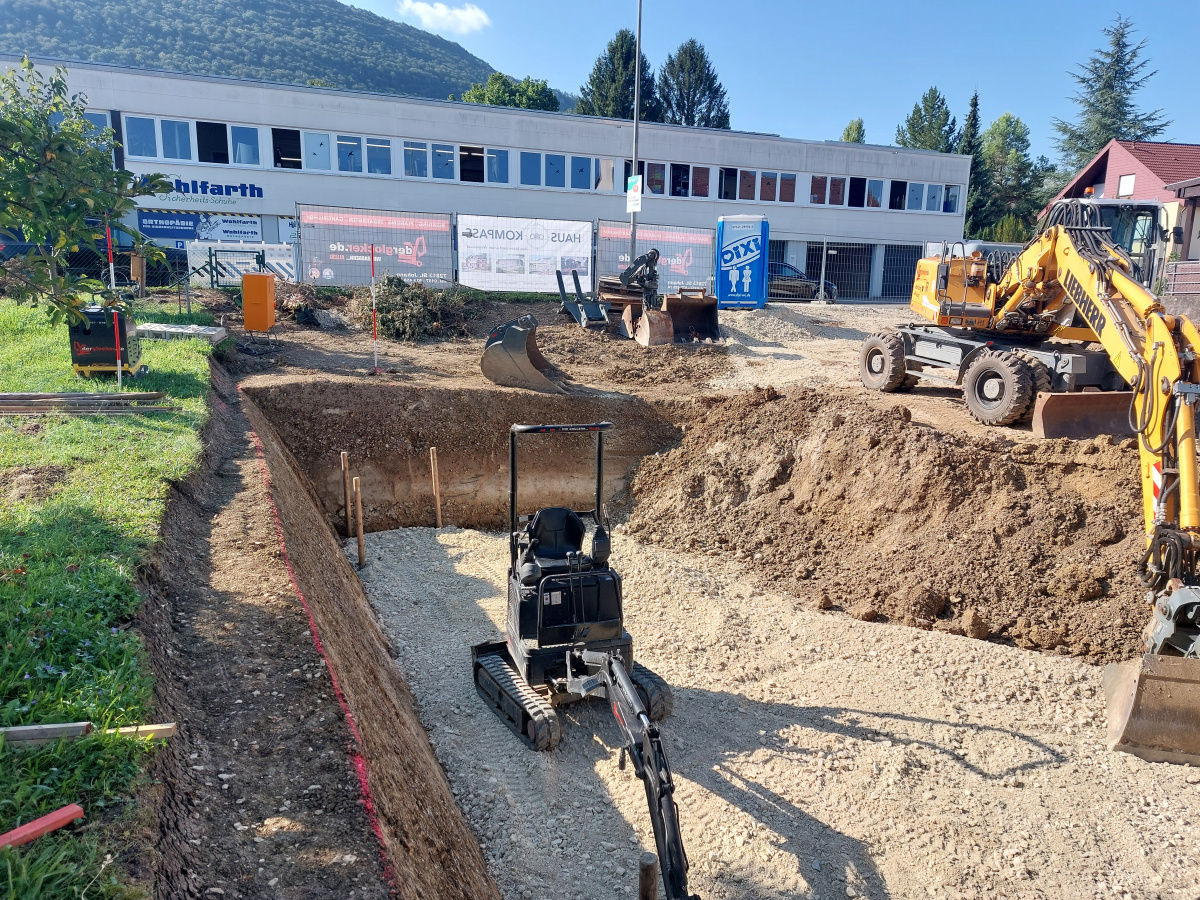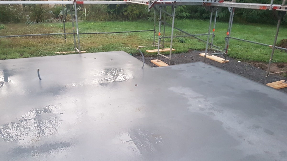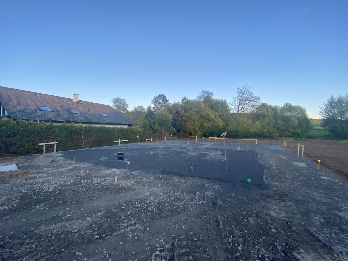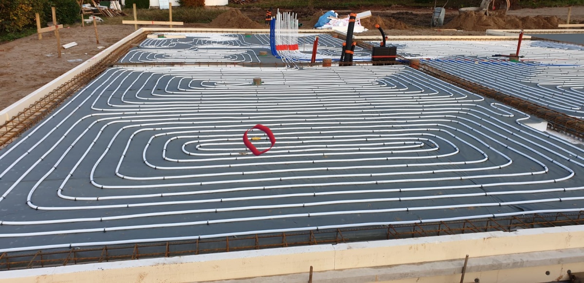 Thermobodenplatte mit Fußbodenheizung und allen Entwässerungsanschlüssen erstellt.
