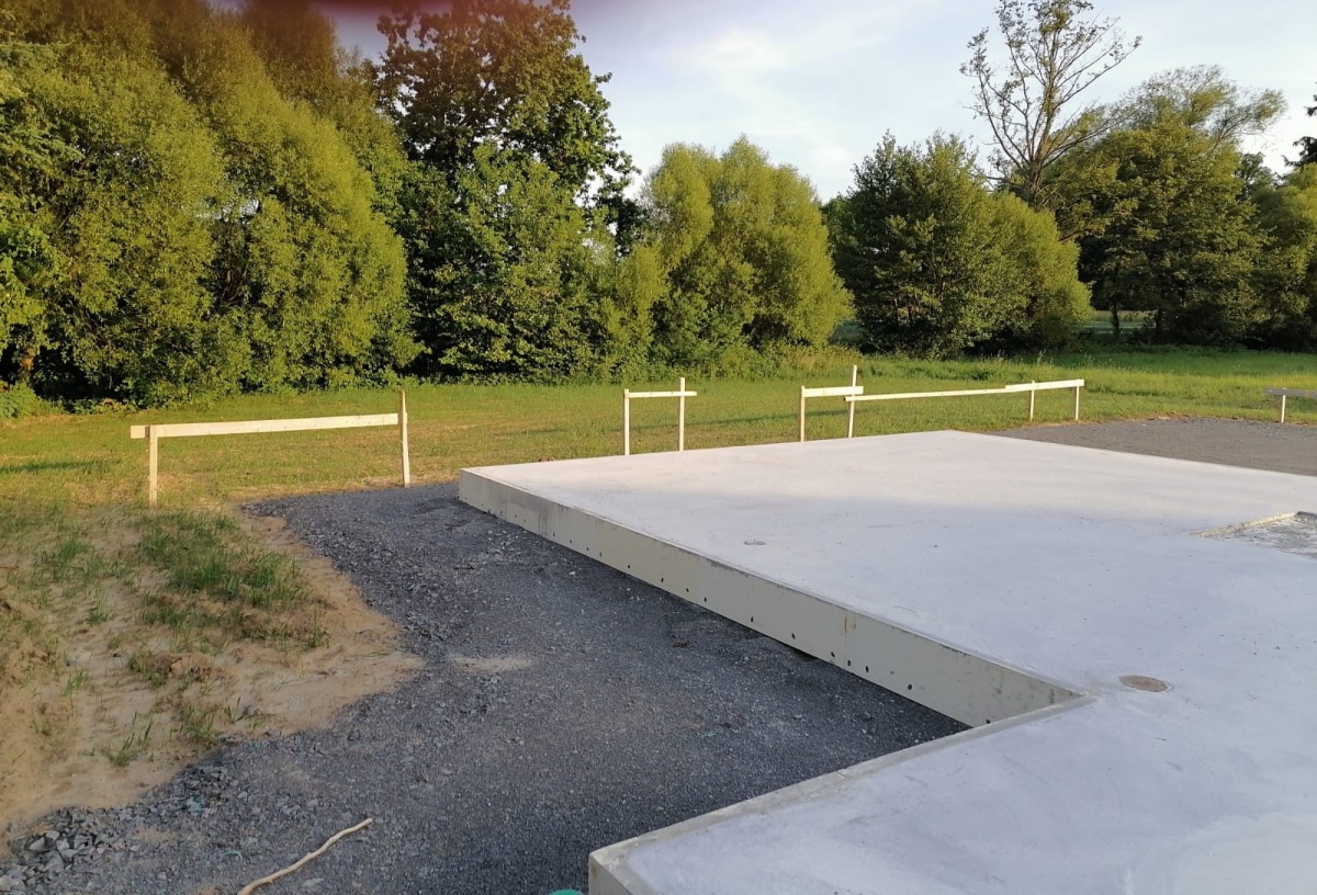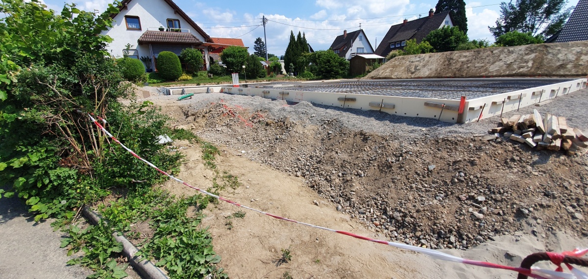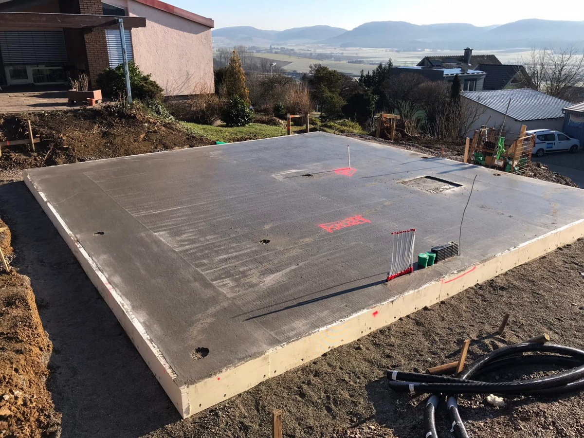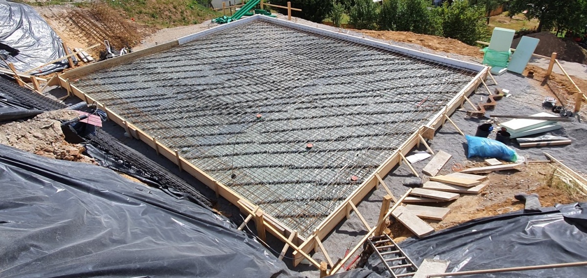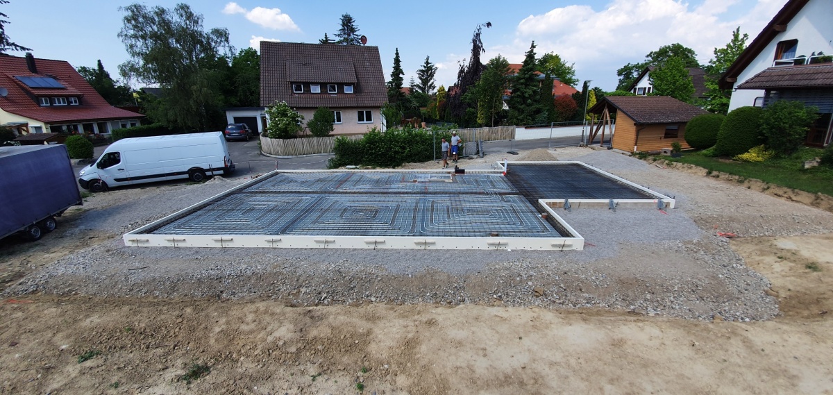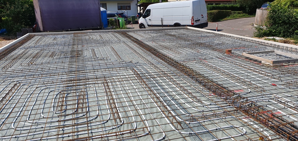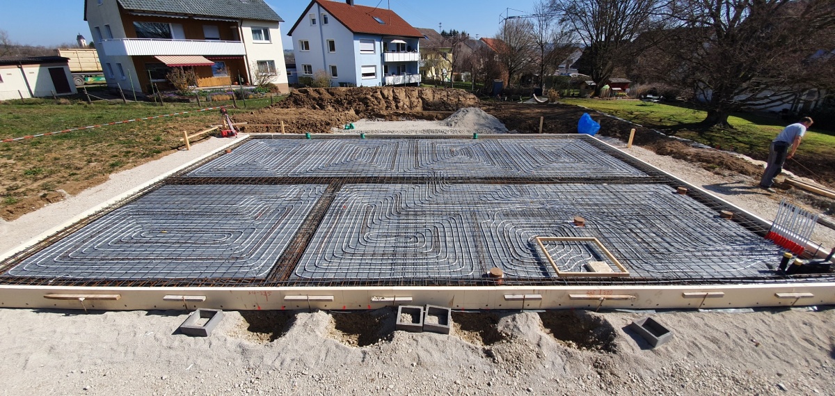 Bodenplatte mit Fußbodenheizung und allen Entwässerungsanschlüssen.