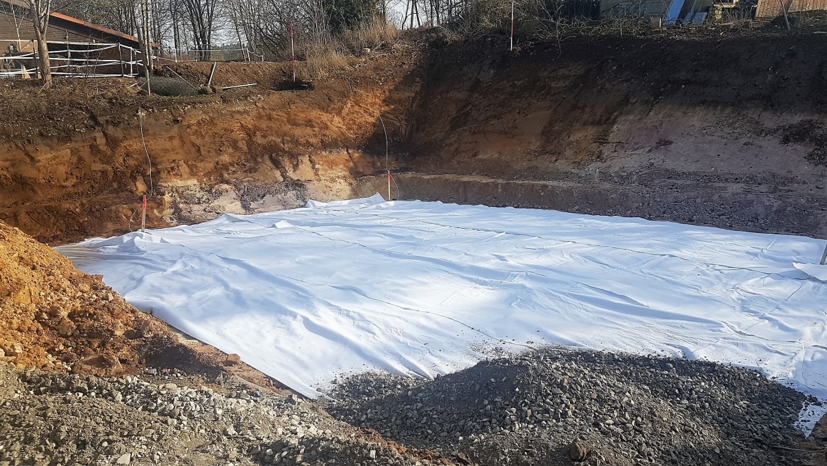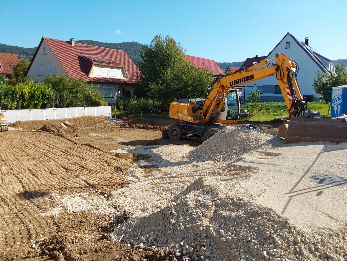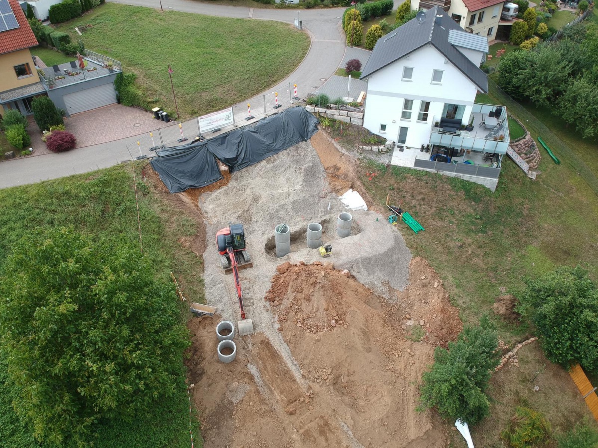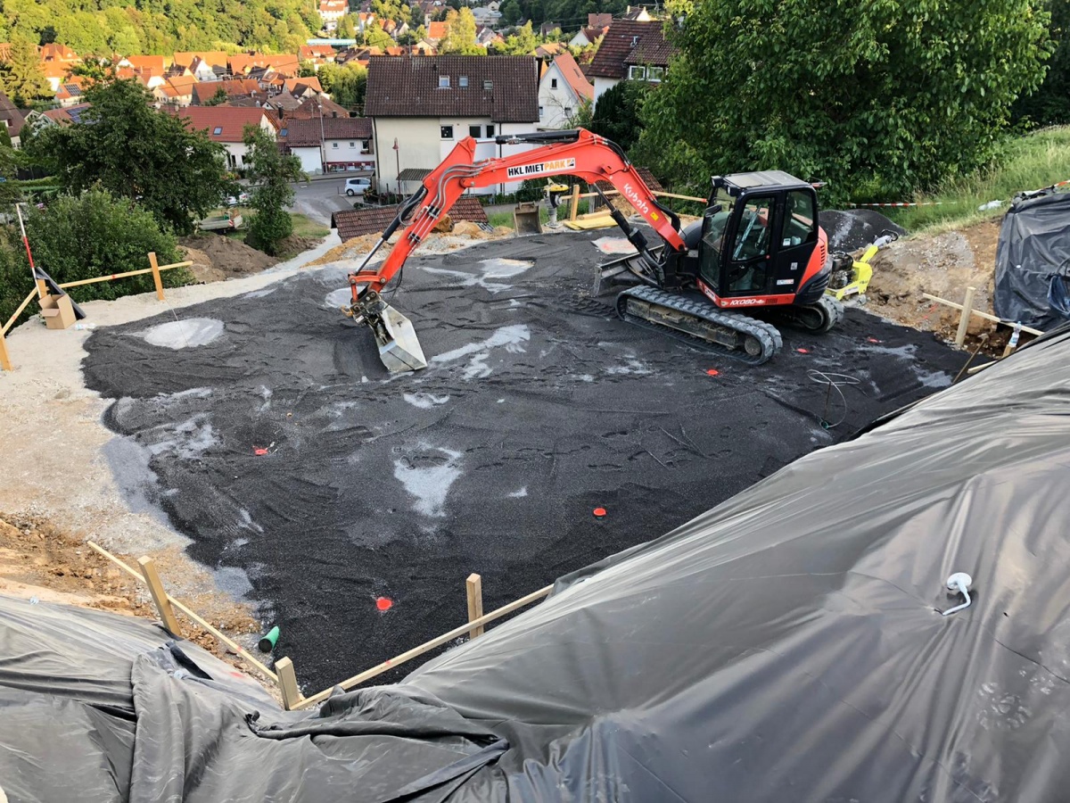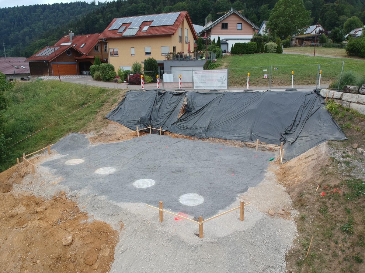 Bodenplatte mit Fußbodenheizung und allen Entwässerungsanschlüssen.
