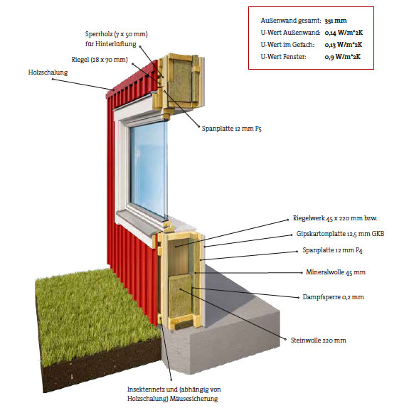 Der Wandaufbau ist bei allen Ausführungen der Gleiche. Selbstverständlich können wir an der Aussenwand noch Veränderungen machen. Z.B. statt einer Holzfassade können wir Ihnen diese auch gerne als Putzfassade liefern. Dies hat keinerlei Auswirkung auf die Energieeffizienz, sondern es lässt sich von Außen nicht erkennen, dass dies ein Schwedenhaus in Holzkonstruktion ist.